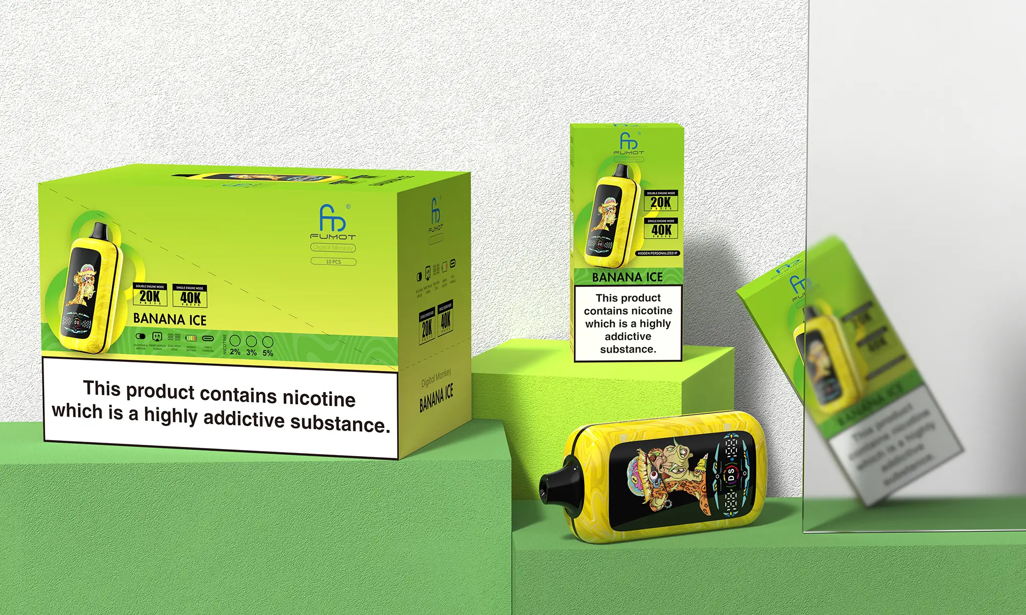The Fumot Digital Monkey 40000 40K Puffs Disposable Vape is a powerful upgrade from the well-known Fumot 12000. Designed with advanced technology and a modern appearance, this device combines dual mesh coil performance, a smart display, and switchable vaping modes to deliver a more interactive vaping experience.
